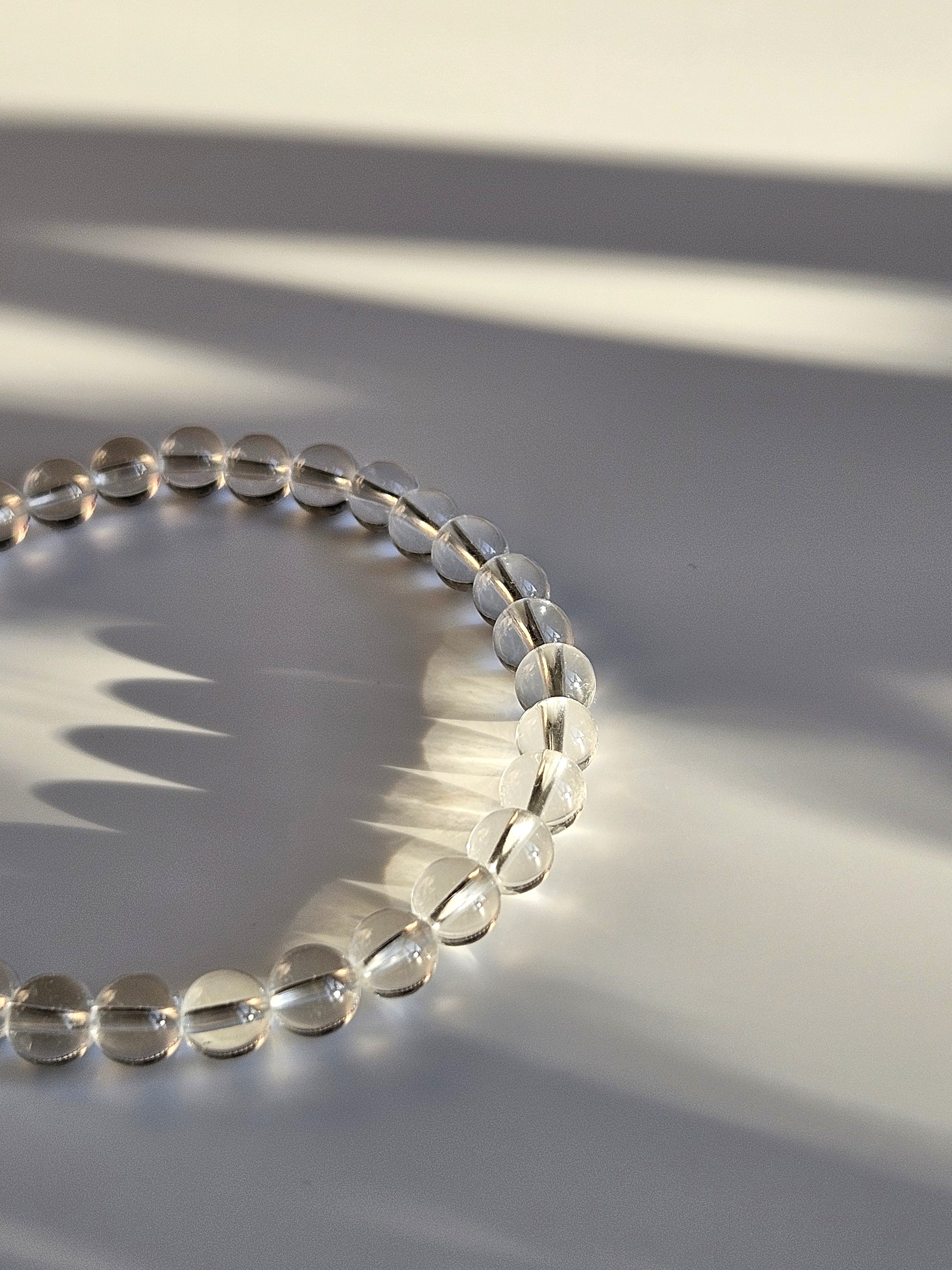 Erstklassiger Bergkristall aufgefädelt auf Stretchgarn