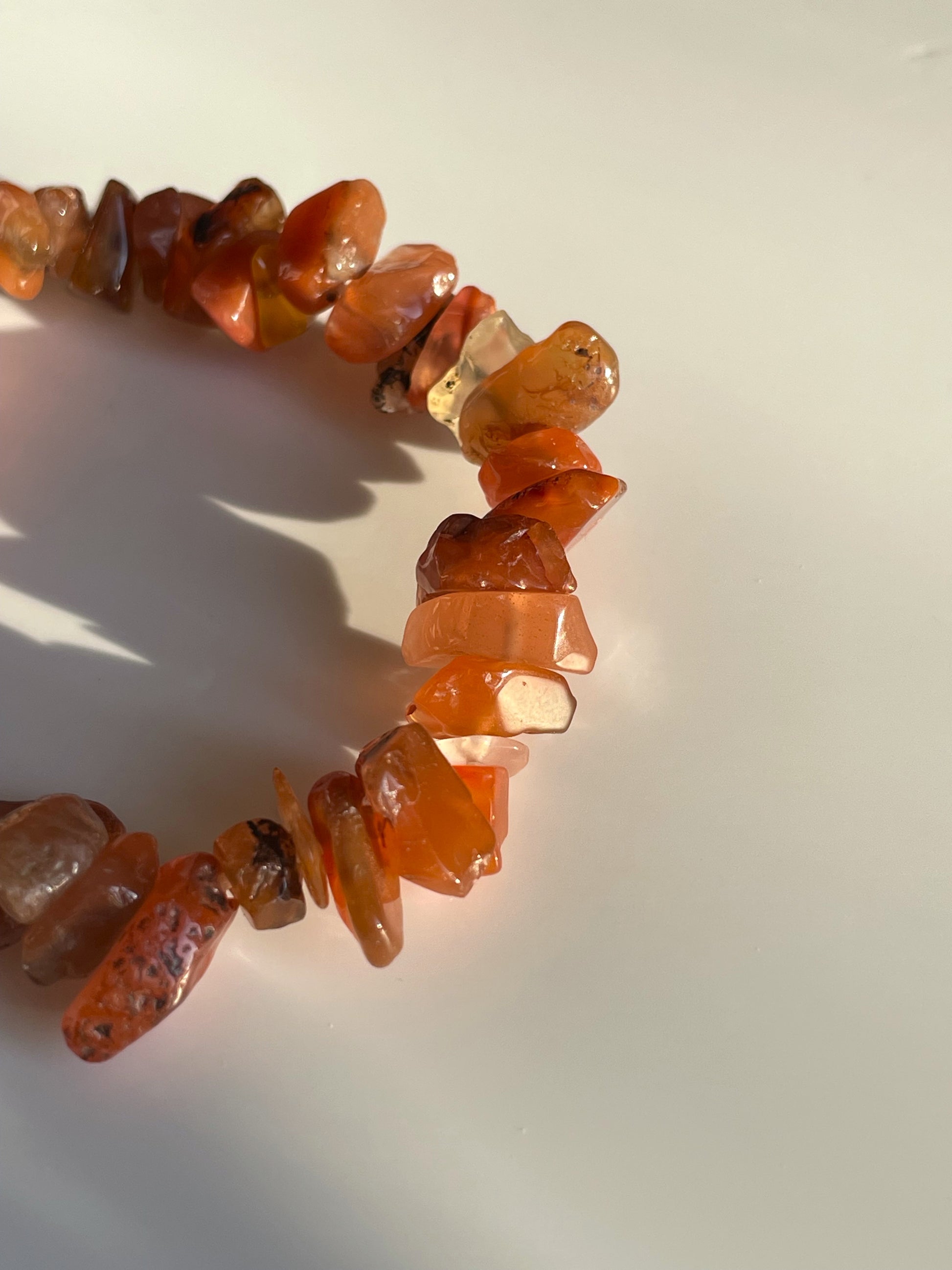 Getrommelte Edelsteinsplitter aufgefädelt auf Stretchgarn