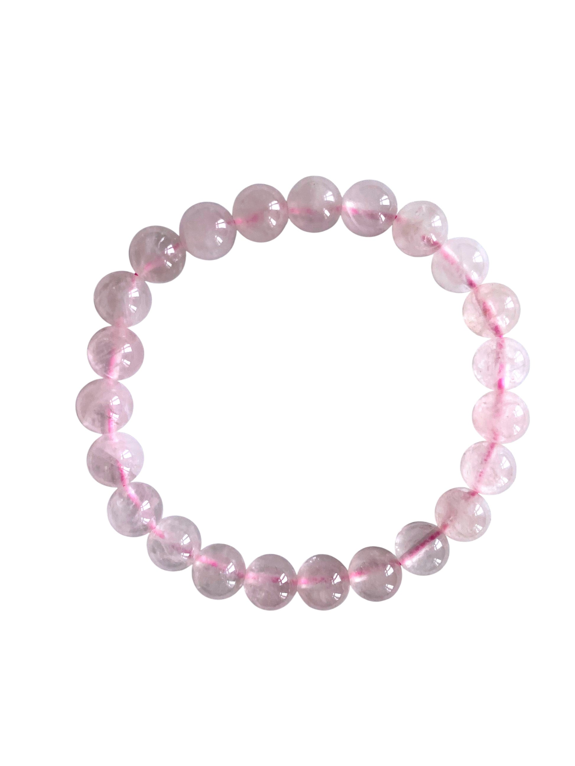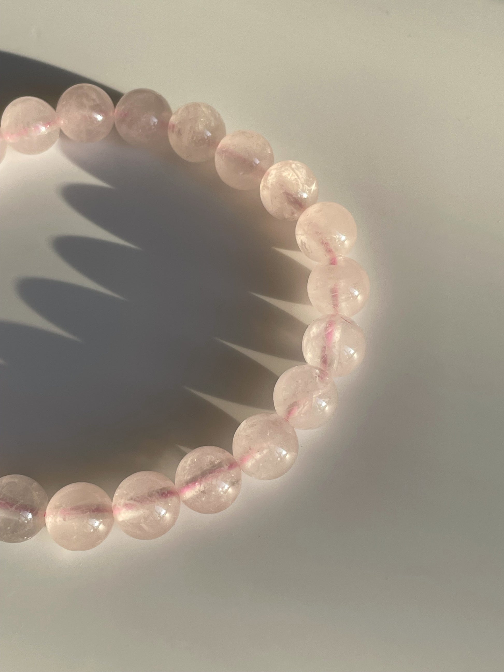 Rosenquarz, aufgefädelt auf Stretchgarn
