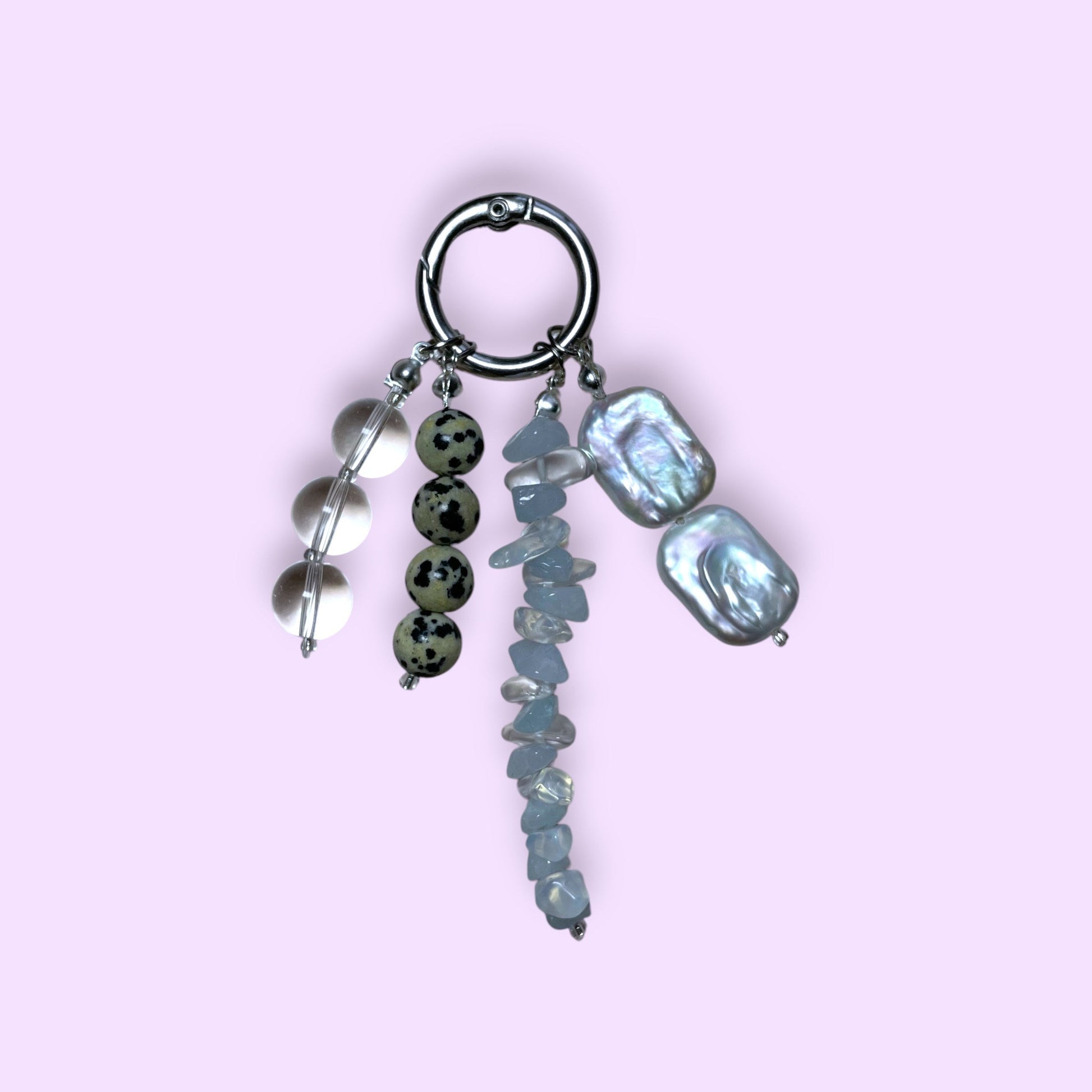 Bergkristall, Aquamarin, Dalmatinerjaspis & Süßwasserperle mit Clipring